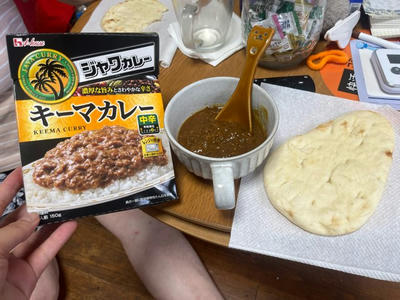 いつかの昼食。ジャワカレーのキーマカレーとナン。