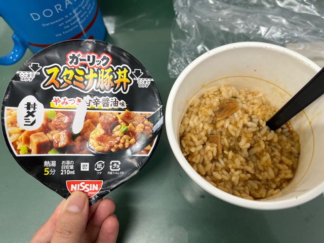 その日のお弁当!味噌汁はネギと鴨肉!フリーズドライなのに凄いですね(゚∀゚ノノ"☆パチパチパチ★