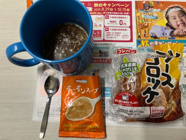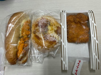 昨日の昼食!惣菜パンとオニオンスープ!