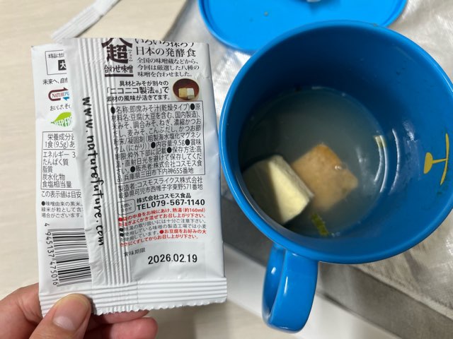 最近食べてるフリーズドライの味噌汁、スゴいんですよ!味噌と具、2個別にフリーズドライされてるんです!特別に美味しい製法なんだそうです(*´༥`*)♡