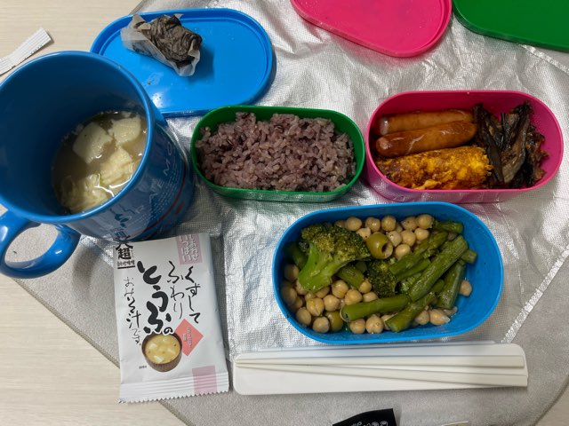 その日のお弁当。味噌汁は豆腐!