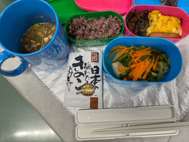 その日のお弁当!味噌汁はきのこ!