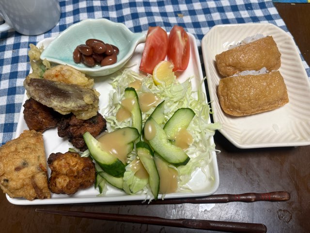 昨日の夕食!からあげ1個といなり1個は食べきれませんでした(ノ∀`)タハー