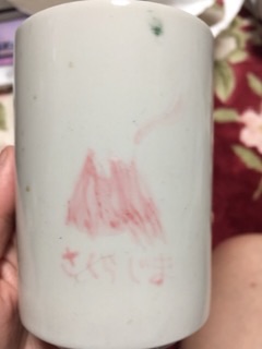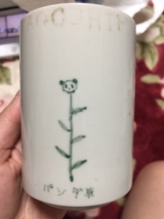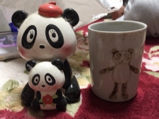 小学校?の時買った貯金箱と、修学旅行で絵付けをした湯のみ。兄から「えらい足が長いパンダ・・・」と言われました・・・σ(´ω`*)