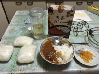 五香カレーと、同じ宿の方がおすそ分けしてくれたきんぴら。