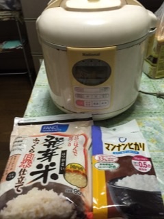 今日はコイツでチャレンジ!発芽米とマンナンヒカリやで!と思ったら、使い方がわかりにくく、時間かかって炊事場の時間を過ぎてしまいました(滝汗…スミマセンでした~!)…それをおにぎりにしたり、平らにして冷凍。