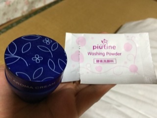 サンプルの洗顔、化粧惑星やすらぎアロマクリームです。