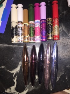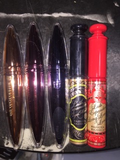 新しいもの5本に絞りました。内4本はお湯で落ちるもの。赤いマスカラだけはクレンジング必要ですが、目尻だけとか毛先だけとかに使おうと思います!( •̀ᄇ• ́)ﻭグッ!