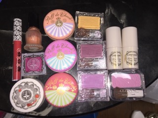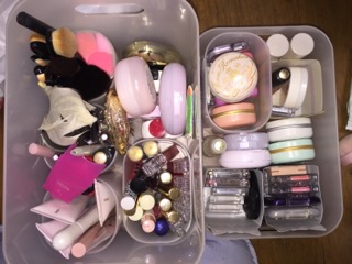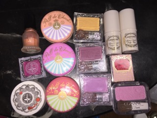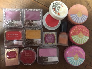 下写真はちょこっと前に撮ったものです。中段左のパウダーのものと、下段左から2番目クリームのもの、写真には写ってないですがホイップ?状テクスチャーの、リップグロスのような細長い容器に入ったものの3つを断捨離してはいたんです。一旦。トホホ...