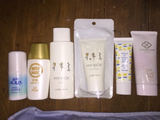 無印のボックスにへ収納していませんが、日焼け止めたちを整理整頓。
