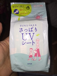 上の写真はシート状日焼け止め。下の写真は、汗ふきシートたち。