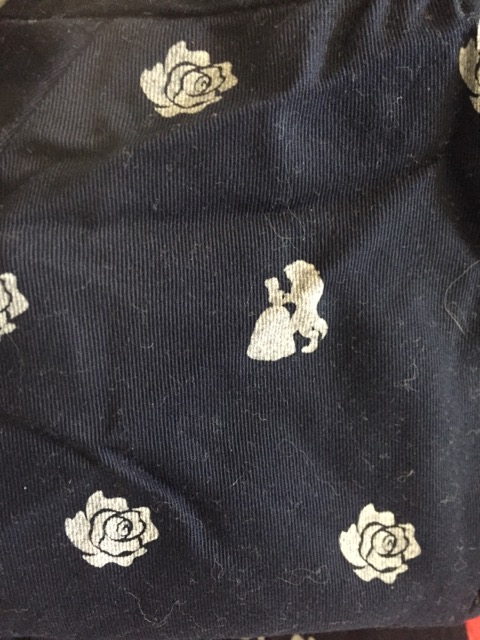 ディズニーの美女と野獣が踊ってるシルエットとバラの柄とか、