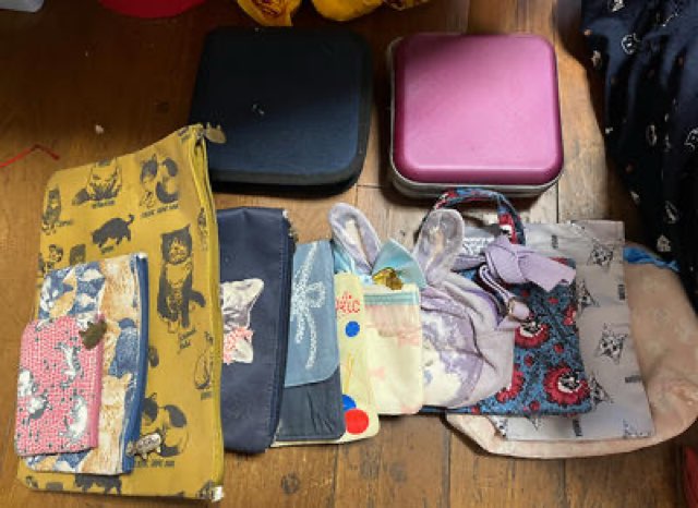 ポーチ類、こんなに増えていたのです。何年も使っていないものを断捨離です!