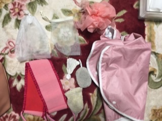 ひとまず、お風呂場付近にあるポールに掛けてる泡立てネット類から見ていきます。