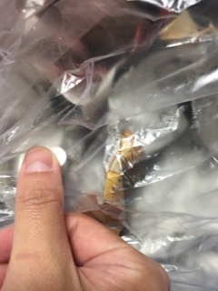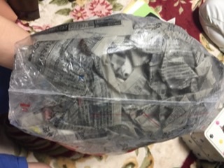 そのビニール袋の底面です。ヘアスプレーって、液体だったりするんすね・・・(。 ・O・)ほほーっ ヘアスプレーは火気厳禁と書かれてたので、染み込ませた新聞紙は袋ごと燃えないゴミへ。