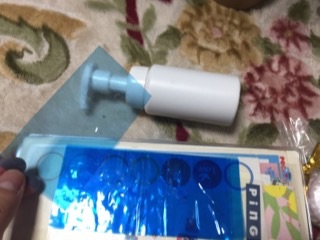 途中で思いついたのが、袋に完全にスプレーを入れ、袋の上から押す、という手段。でもなかなか終わりが見えない・・・