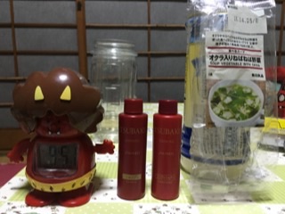 旅行用サイズのTSUBAKIシャンプー・コンディショナー、無印のフリーズドライスープです。