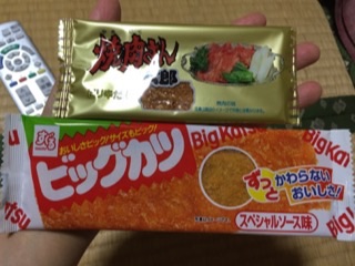 焼肉さん太郎さんとビッグカツ。焼肉さん太郎さんは、初めて食べたかもですバイ…(創。´・ω・)y─┛フゥ…