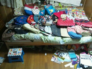 そういえば…と考えていたバッグ。ときめきお片付けを心に叩き込み、いざバッグをベッドに並べてみました。