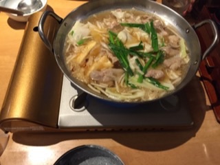 ウエストといううどん屋さんでもつ鍋。ななんと、一人前300円なのです…二人前からの注文で、小さめですが。
