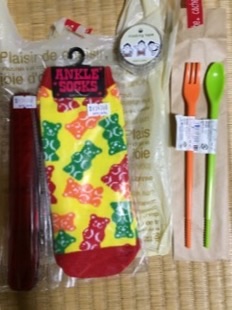 手持ちの色鉛筆型箸がちょうど入る箸ケース、スプーン、フォークがついてる箸、ハリボー風スニーカーソックス、お相撲さんマスキングテープ…を、300円ショップで。安くはあったのですが、今すぐ使うワケじゃないモノを買っちまったい…【私はъака】\_(・ω・`)ココ重要!