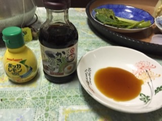 牡蠣エキス醤油とポッカレモンで、ポン酢もどき、&マヨネーズで頂きました!