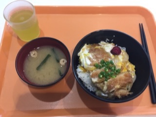昼は学食でカツ丼。