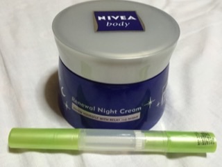 ニベアボディ リニューアルナイトクリームってやつと、ペン型ネイルクリーム?オイル?です。