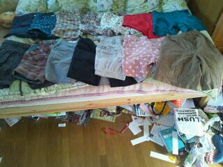 断捨離迷い中の黒セーターを今日は着ていましたが、迷い中の短パンも、今日は着てみました。