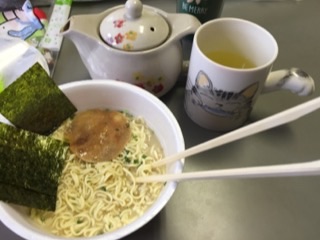 カップ麺食べた時、お湯が終わってしまって抽出中だった緑茶を足しました…混ぜても自然…❀.(*´▽`*)❀.サワヤカ?