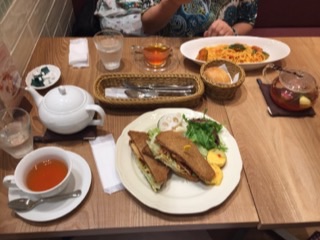 アフタヌーンティーで、オカンはパスタ、私はサンドウィッチ。デザートとバナナティーも美味しかったです!Σd(・ω・d)ウマウマ!!!