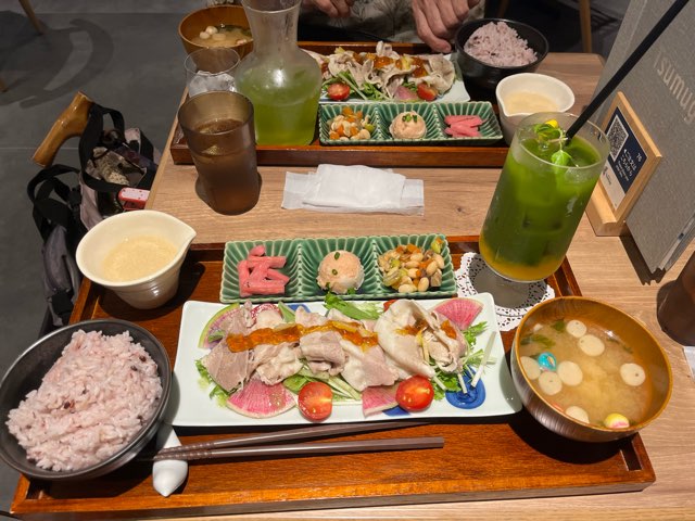 和カフェツムギというカフェで、オカンとランチ。冷しゃぶ御膳みたいなやつ。