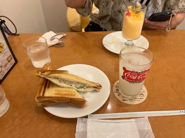 西銀という喫茶店で、ホットサンドとカルピス。オカンはミルクセーキ!